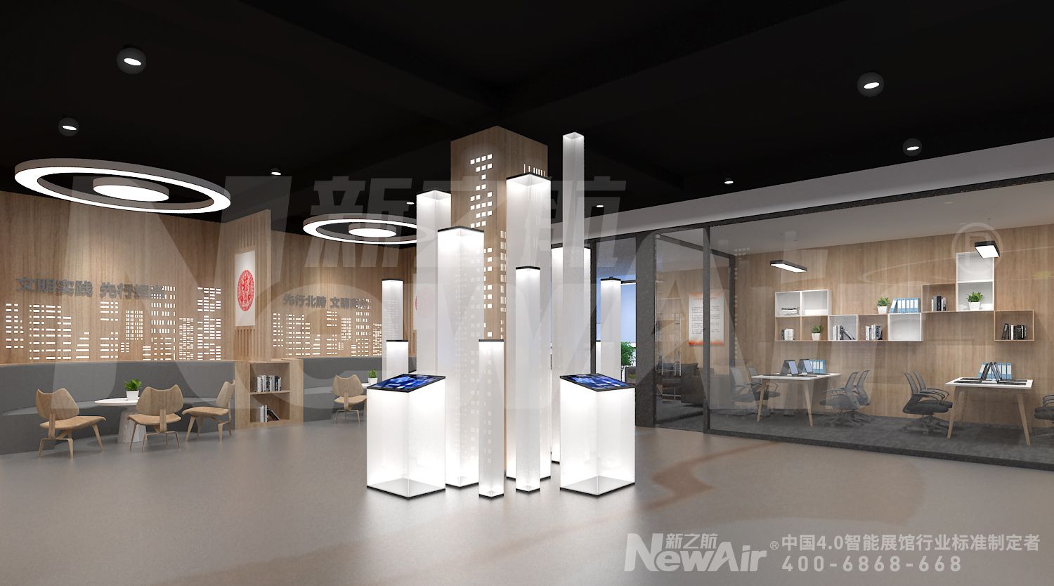 文案策划领衔、创意设计领先、智能互动科技持续创新的新之航,凭借七大“全国首创”,为政府和企业客户连续设计施工高标准特色展馆。全国首创3000万元年度研发基金激励设计师创意创新,全国首创全球设计大师展馆方案联审制,全国首创每年投资500万元创意设计师赴全球考察学习,全国首创100%原创、100%实效、不满意100%退款“满意300”服务承诺模式,全国首创模块化定制绿色环保标准化施工模式,全国首创空间架构师优先科学规划布展方位确保展馆能量守恒,全国首创从展馆设计施工到展馆运营全产业链“馆家”服务模式。