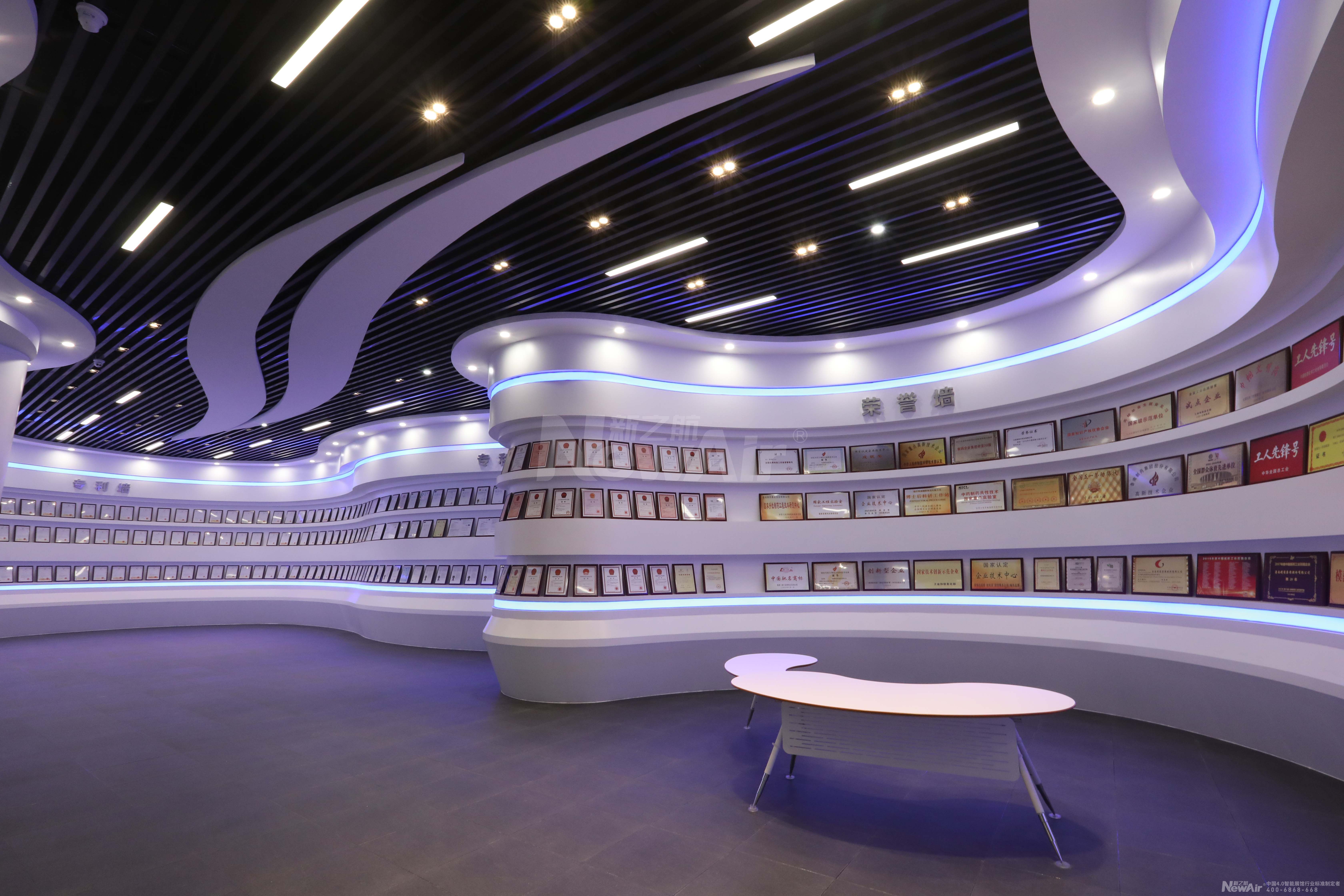 鲁南制药是国家创新型企业、国家火炬计划重点高新技术企业,申请产品发明创新专利几千余,面对如此大信息量的展示需求,设计高容纳量的巨大的流线式展示墙来承载,以强有力的视觉冲击力展示鲁南制药集团雄厚的技术实力。