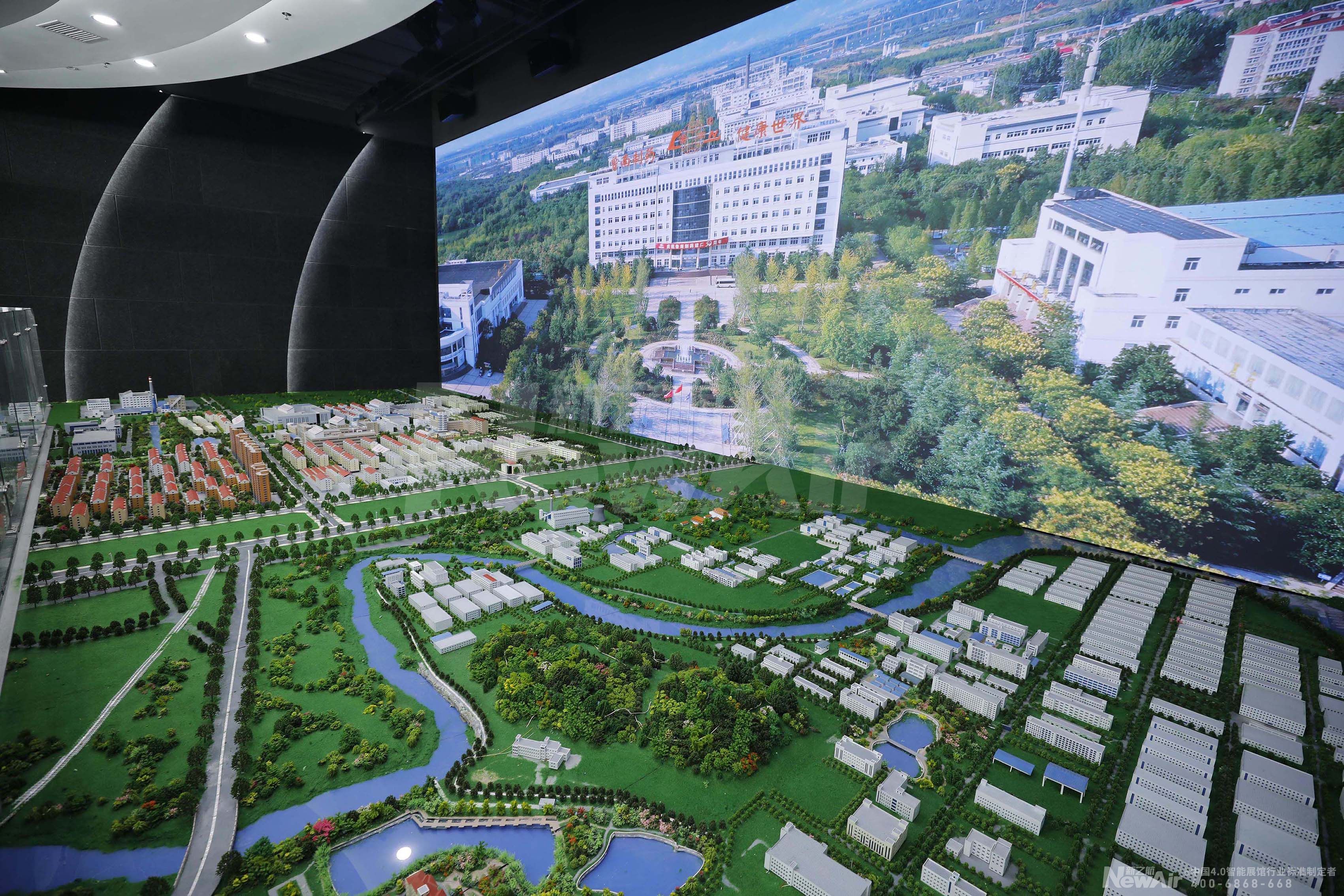 利用声、光、电、屏幕、投影及计算机系统联动,一块巨型智能沙盘可实现智能操控、智能影像、智能立体音效讲解以及高度匹配影音的医药园区演示。这处沉浸式体验空间,将鲁南制药未来产业蓝图立体展示。