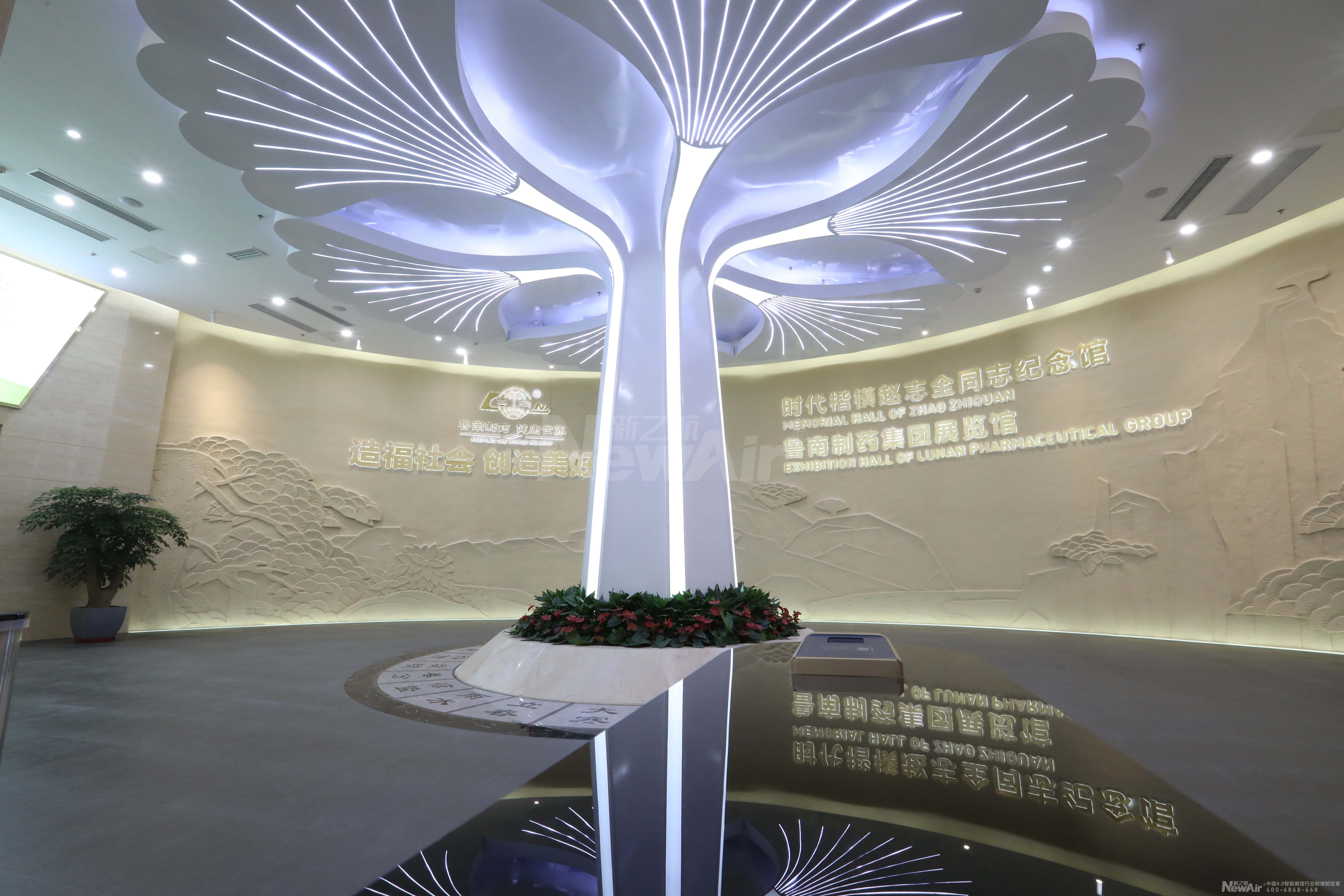 银杏是象征健康的生命之树,也是鲁南制药所在地临沂的市树,是鲁南制药部分生物制药的宝贵原材料。展览馆序厅以一株高达7米的银杏树为核心造型,象征着鲁南制药集团生生不息、繁茂生长,表达鲁南制药立志建设百年企业的信心和决心。