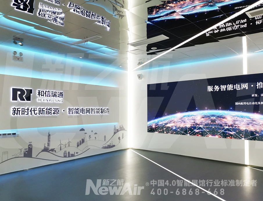 北京和信瑞通电力技术股份有限公司,是国内技术领先的电力设备及自动化整体解决方案供应商。新之航策划设计团队以“绿色环保、现代时尚和智慧科技”为设计理念,巧妙运用4.0展馆技术,将内容、展现和体验有机结合,为企业塑造具有鲜明个性的数字展馆。
