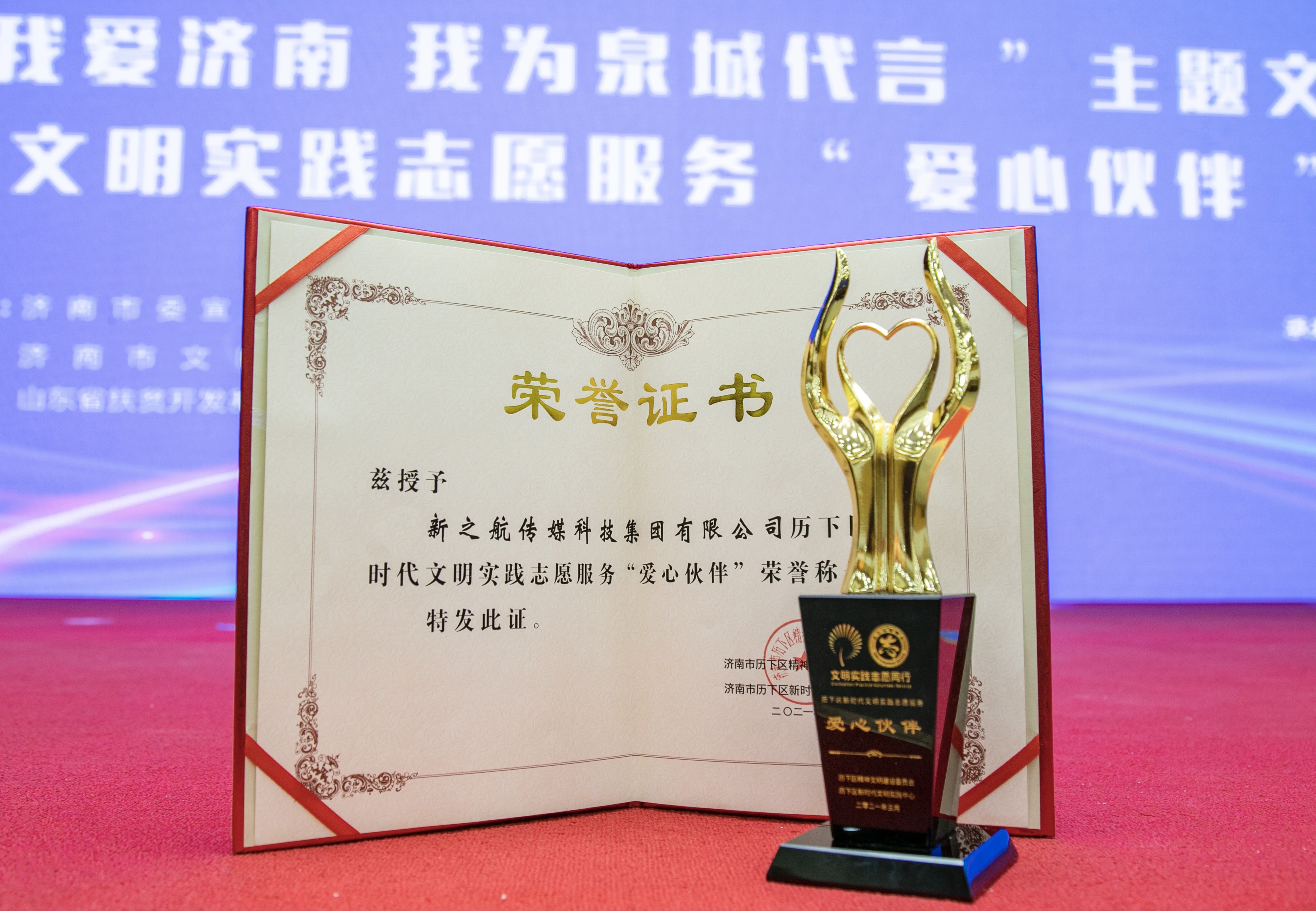 3月10日上午,历下区举行“我爱济南 我为泉城代言”主题文明实践活动启动暨2021新时代文明实践志愿服务“爱心伙伴”项目发布仪式,山东省扶贫开发基金会秘书长黄凤梅;济南市委常委、宣传部部长杨峰;济南市委宣传部副部长曹湧;济南市民政局副局长成文元;历下区委书记江山;历下区委副书记、办公室主任纪亮;历下区委常委、宣传部部长王海清;历下区副区长赵琳等有关领导出席活动 。新之航传媒科技集团有限公司作为爱心认领企业出席活动。