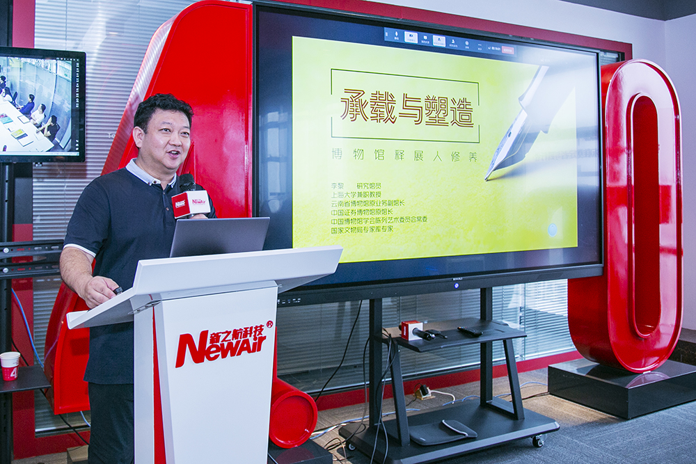 6月15日,新之航2021年展馆策划设计专业培训会在新之航商学院召开。培训会特邀研究馆员、上海大学兼职教授、中国博物馆协会陈列艺术委员会常委、国家文物局专家库专家李黎,结合自身从业经历和项目案例,解读一名优秀博物馆释展人的必备修养。培训会由总经理傅绎锦主持,北京新之航、济南新之航、青岛新之航全员参会。