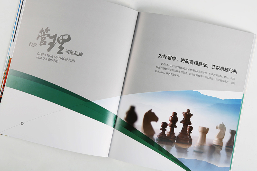 设计上,在100余幅图片的排列中,“耕耘”元素贯穿始终,保证了画册的完整性、协调性;山东省17地市,不同风采,每一个页面,均具有不同的设计风格,合理的版面设计排版,保证了整本画册的和谐基调;图片形状的巧妙地裁剪、应用,主次突出,增加了版面的韵律感,凸显了每一个业务的特色。