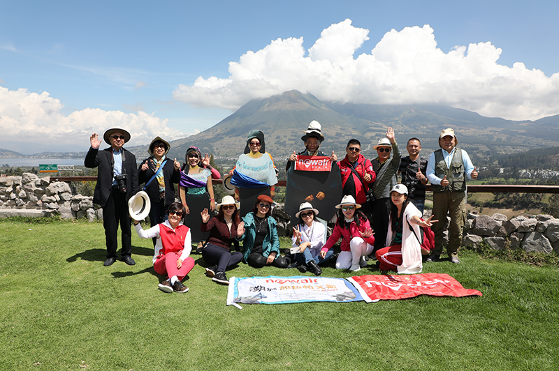 在San Pablo火山湖观景台,山底辽阔清澈的火山湖倒映着严肃高耸的火山,此时碧波将天人合一的绚烂精致漾起一道道令人沉醉的涟漪,触动着每个人的心怀。