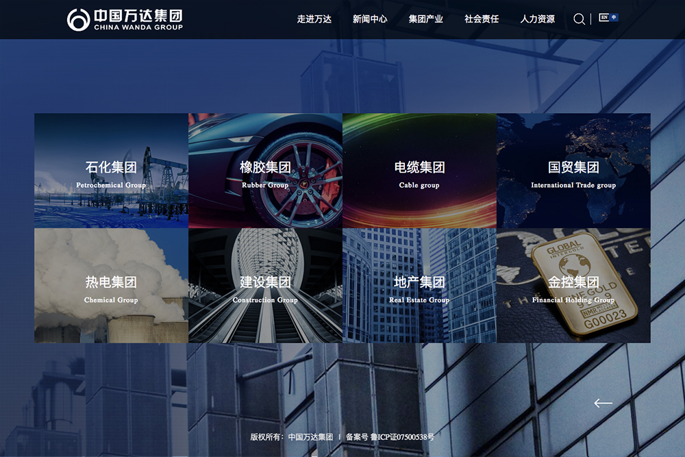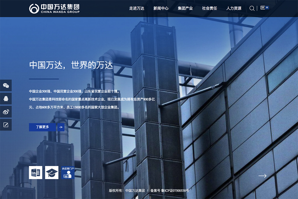 中国万达集团是科技部命名的重点高新企业,中国企业500强,拥有总资产800多亿元,占地600多万平方米,员工13000余名。集团下辖石化、地产、橡胶、电缆、热电等十余家子公司,新之航软件为万达集团及下属子公司统一定制开发了由17个独立子网站组成企业站群系统,实现了站群的页面统一设计和内容的统一管理。
