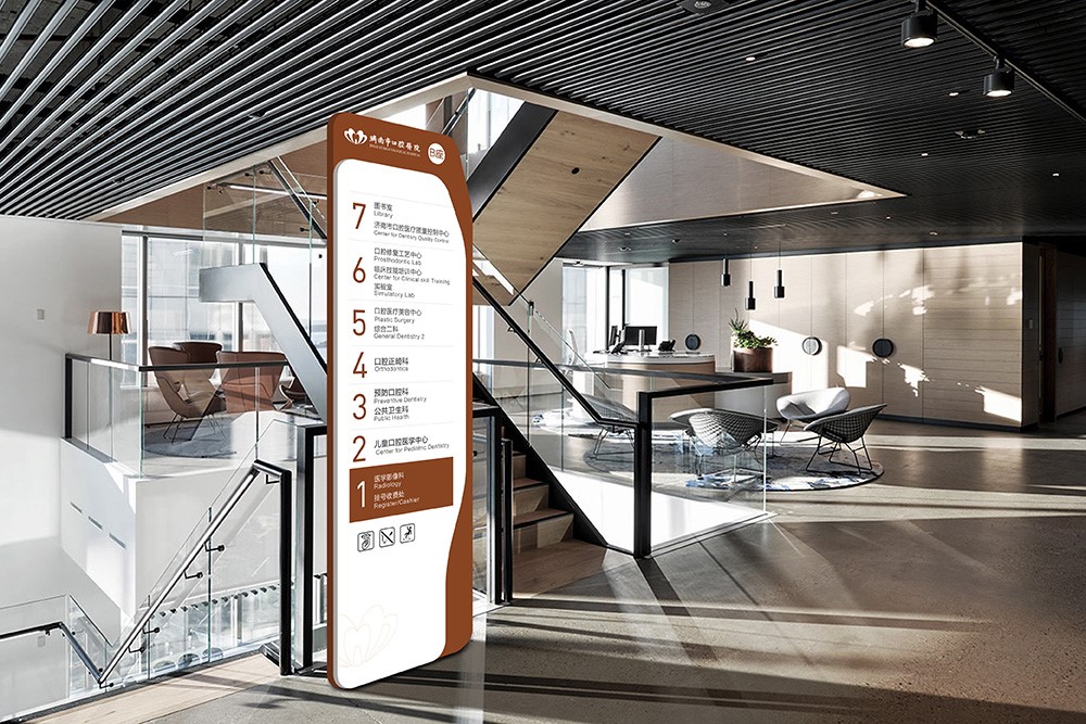 济南市口腔医院始建于1956年,是一所集医疗、教学、科研、保健、预防为一体的三级甲等口腔专科医院,是山东省临床重点专科、滨州医学院非隶属附属医院。2017年,新之航依据济南市口腔医院总院区B座和高新院区的建筑结构,进行合理的动线规划和色彩功能分区,在方便就医患者迅速到达目的地的同时,亦通过环境设计缓解就医情绪,从而打造适合医院使用的专属导引导视系统。