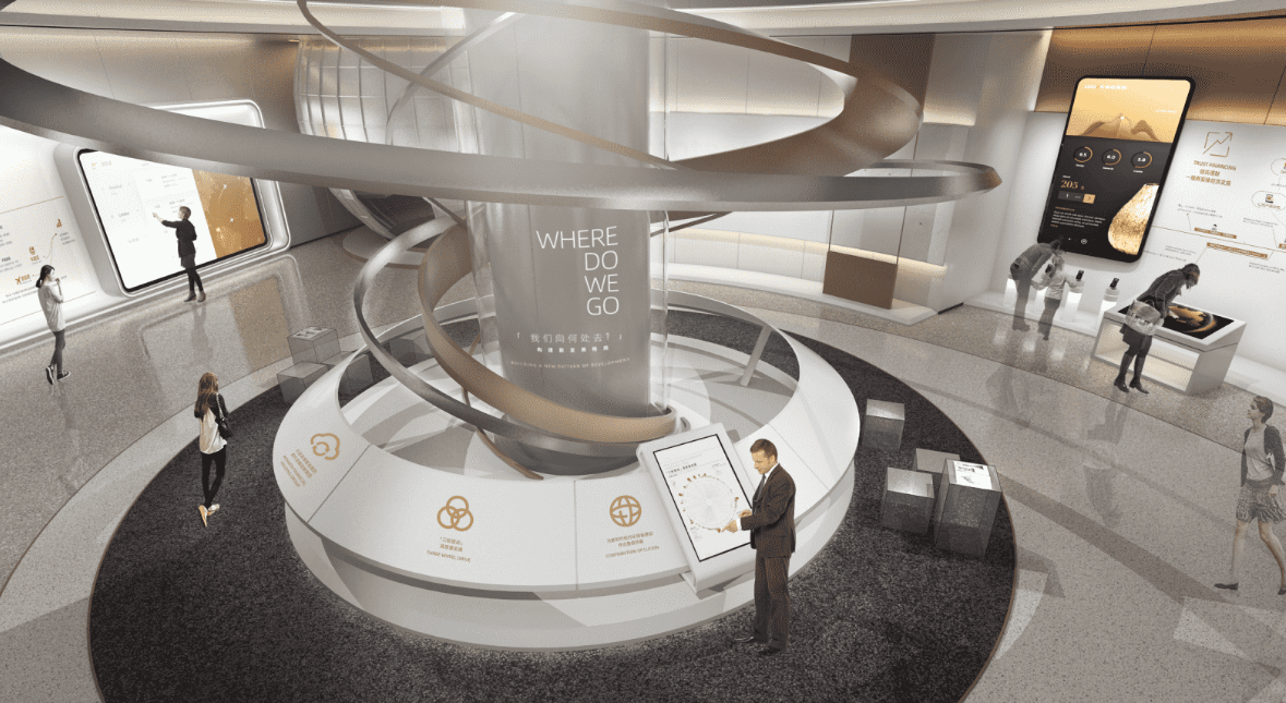 创意亮点:简约、高雅的中心聚集式设计,将视觉中心集中化;沉浸式互动体验、实时数据接入等形式,立体化展示鲁信集团作为省级金融控股集团的强大实力。